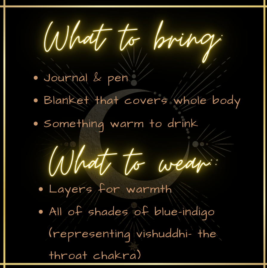 Yay! Happy to hear you’ll be joining us again. All you need to bring is your lovely self and whatever is necessary to keep you comfortable and warm while we gather. Excited to share space with you! Warmly, Audrey Grace
